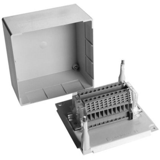 Anschlussdose mit Reihenklemmen Aufputz zu Heizkreisverteiler für 6 Zonen mit max. 6 Raumthermostaten und max. 14 elektrothermischen Stellantrieben.