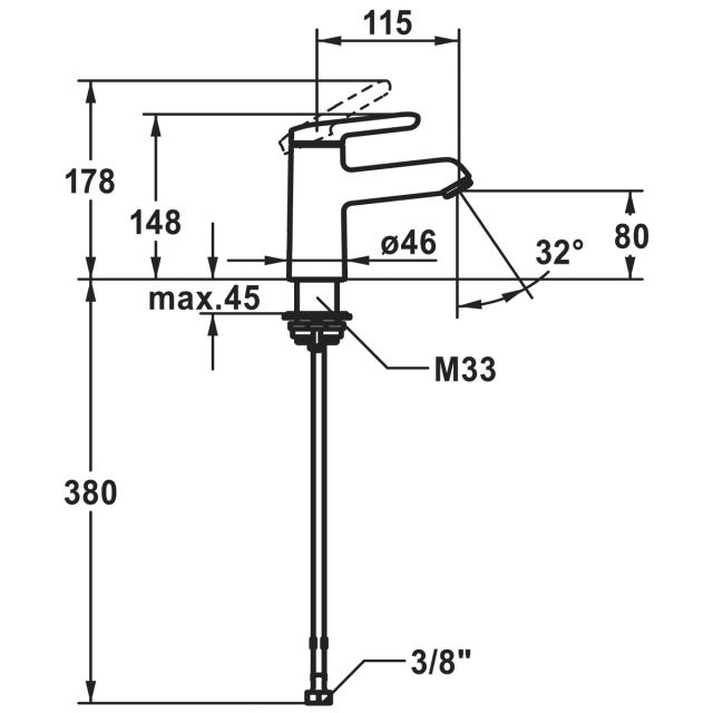 A 115 mm, bocca fissa, senza valvola di scarico, tubi di collegamento 3/8", cromatura