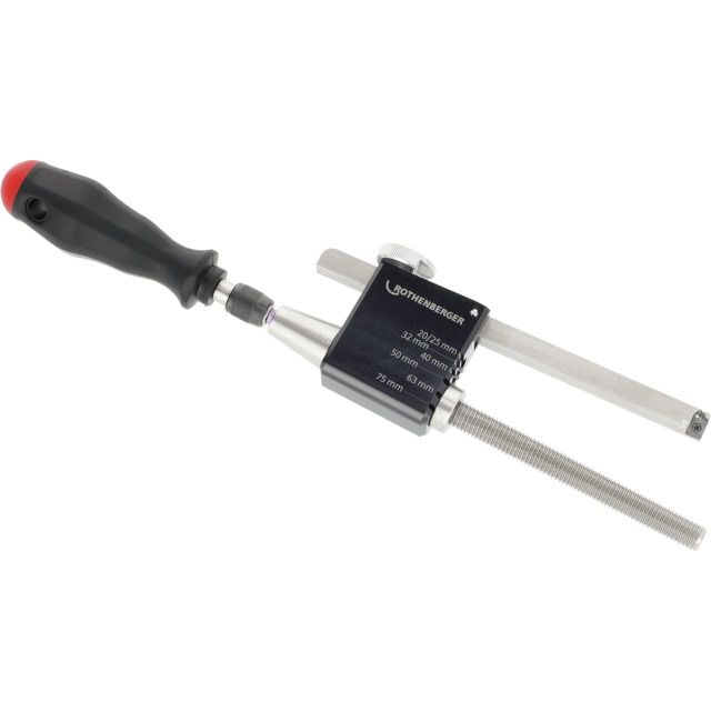 Il dispositivo di pelatura ROSCRAPER 75 è progettato per rimuovere lo strato di ossido da tubi termoplastici e parti stampate. La lama di alta qualità garantisce un'asportazione di trucioli di almeno 0,2 mm per ogni processo di pelatura, in conformità alla norma DVS 2207. Oltre a tenere saldamente l'utensile di pelatura, i tappi assicurano anche che le estremità dei tubi siano pressate in modo rotondo, contrastando così l'eventuale ovalizzazione delle estremità dei tubi. Il processo di pelatura viene eseguito utilizzando l'impugnatura in dotazione.