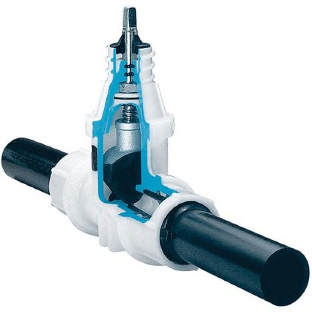 Le saracinesche con tronchetto PE saldabile vegono saldamente collegate tramite manicotti elettrosaldabili, saldatura testa a testa con elemento riscaldante o bloccaggi meccanici (Sisteme 2000).