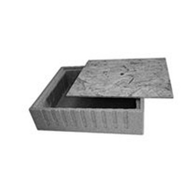 Cassetta collettore in EPS SE 60 ad alta densità grigio chiaro per l'installazione a pavimento o sotto armadi. Chiusa completamente con coperchio protettivo in pannello di legno impermeabile OSB. La cassetta non è calpestabile.