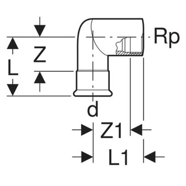 Geberit Mapress Gomito misto 90° acciaio inox con filetto femmina