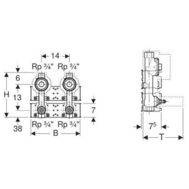 GIS Placca di montaggio con due allacciamenti idrici per contatore dell'acqua con valvola<br>d'intercettazione ad incasso JRG LegioStop®