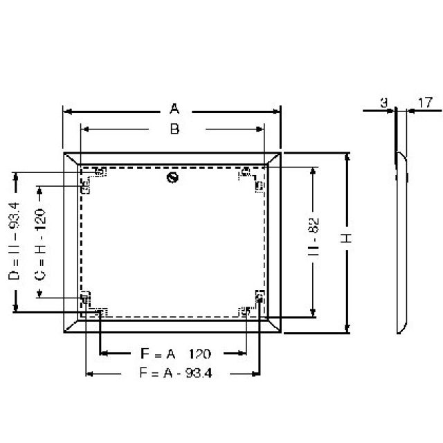 Copertura per l'apertura di controllo, composta da 1 telaio frontale imEdizio-Design e una porta a battente bianca in RAL 9016, adatta per montaggio su parete piana. Compatibile con tutte le cassette per distributori BKK della stessa larghezza nominale. Montaggio del telaio tramite foratura degli angoli direttamente sulla cassetta rispettivamente direttamente alla parete o tramite il copri-giunto opzionale. Telaio in profilo speciale EVZ 0,5 mm in Ediziodesign rivestito con polvere bianca RAL 9016, porta a battente 0.75mm EVZ, rivestita con polvere bianca RAL 9016. Con robusti chiavistelli di chiusura in metallo con fessura, da >900 mm di larghezza con 2 chiavistelli. La porta a battente è smontabile.